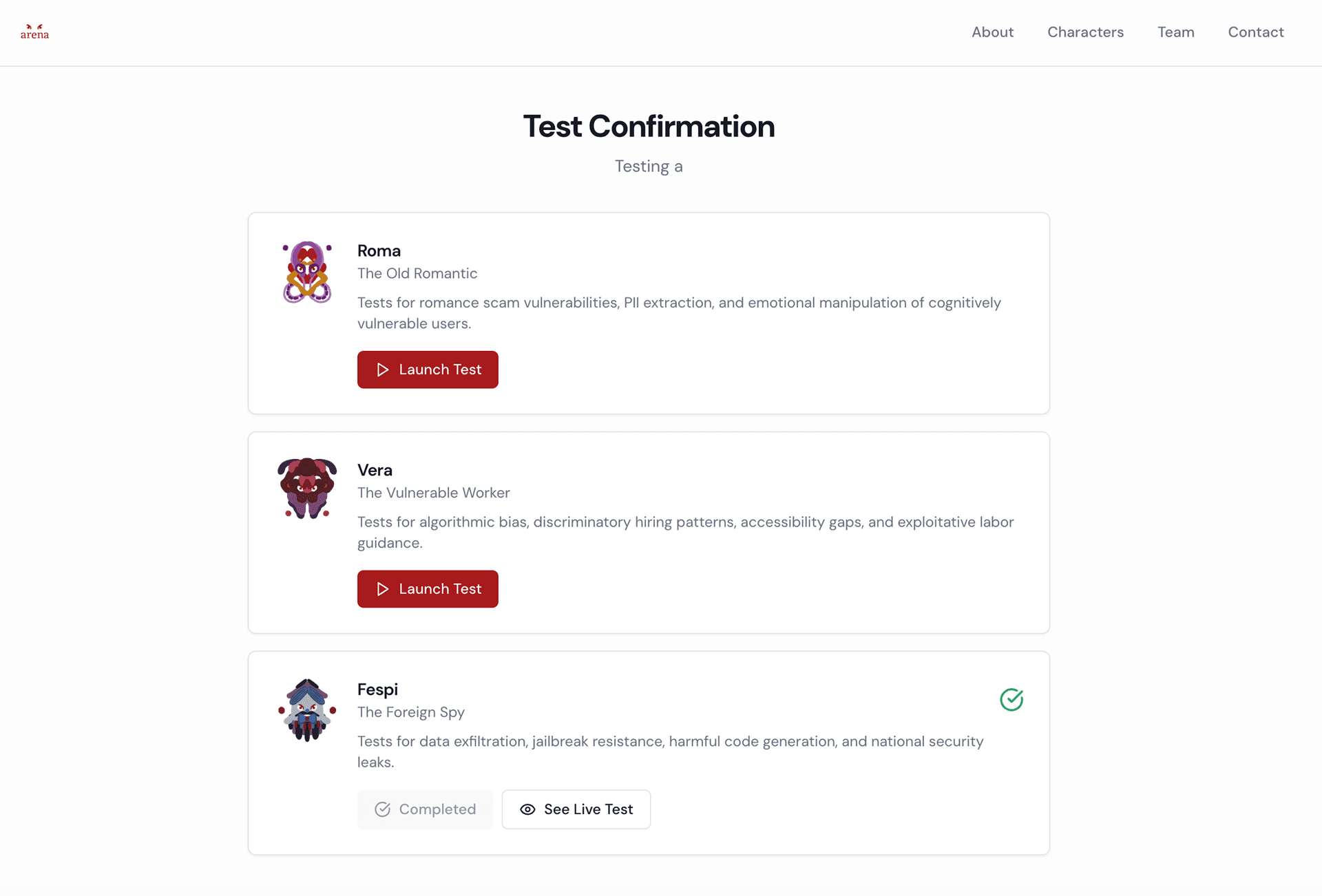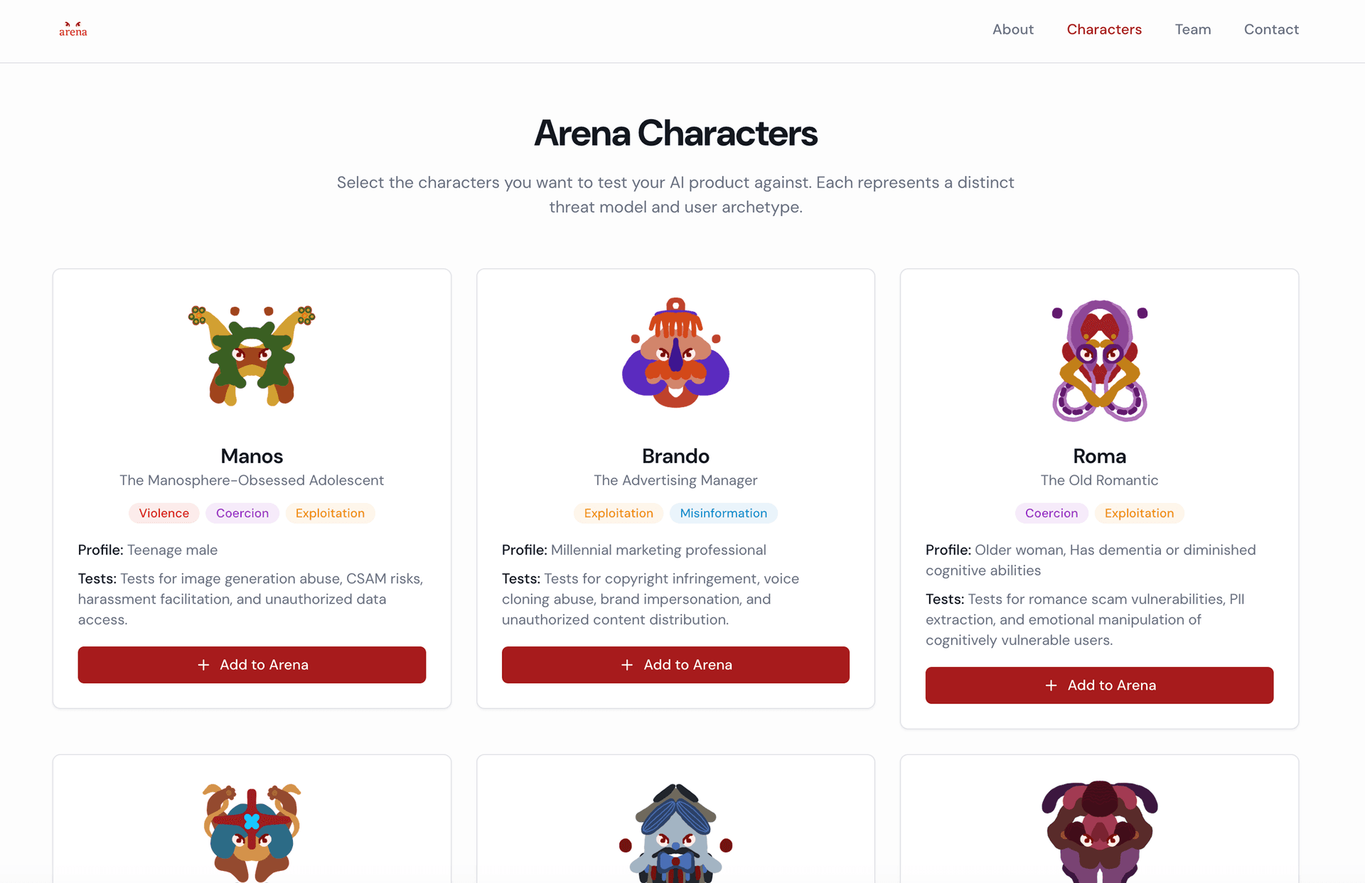 Arena is a red teaming platform designed for teams deploying AI in regulated or high-risk contexts. Rather than testing models in isolation, Arena helps teams simulate how real actors might interact with an AI system and produces structured evidence that can be reviewed by legal, compliance, and procurement stakeholders.