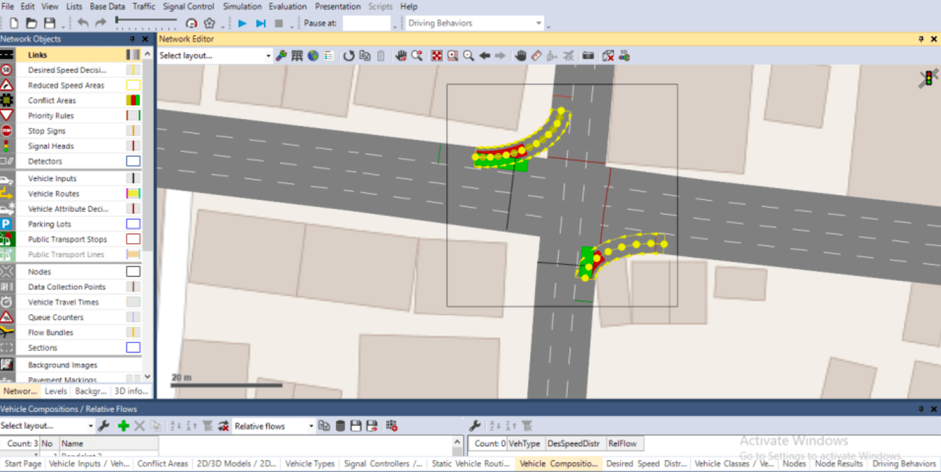 - Traffic Microsimulation (PTV Vissim) → modeled driver, vehicle, and pedestrian interactions